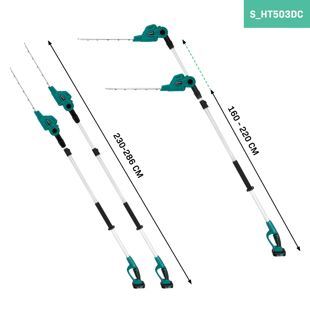 - Bez wysiłku przycina wysokie żywopłoty o wysokości do 3 metrów.