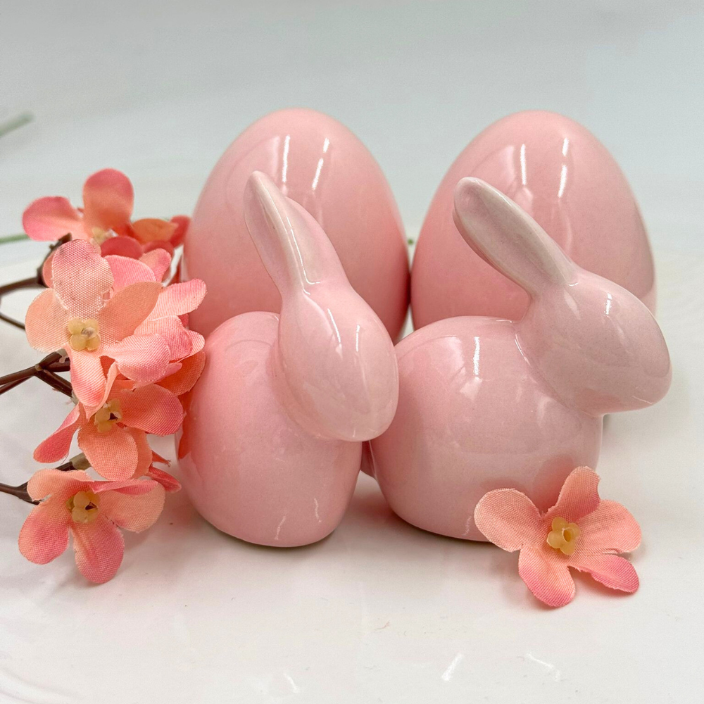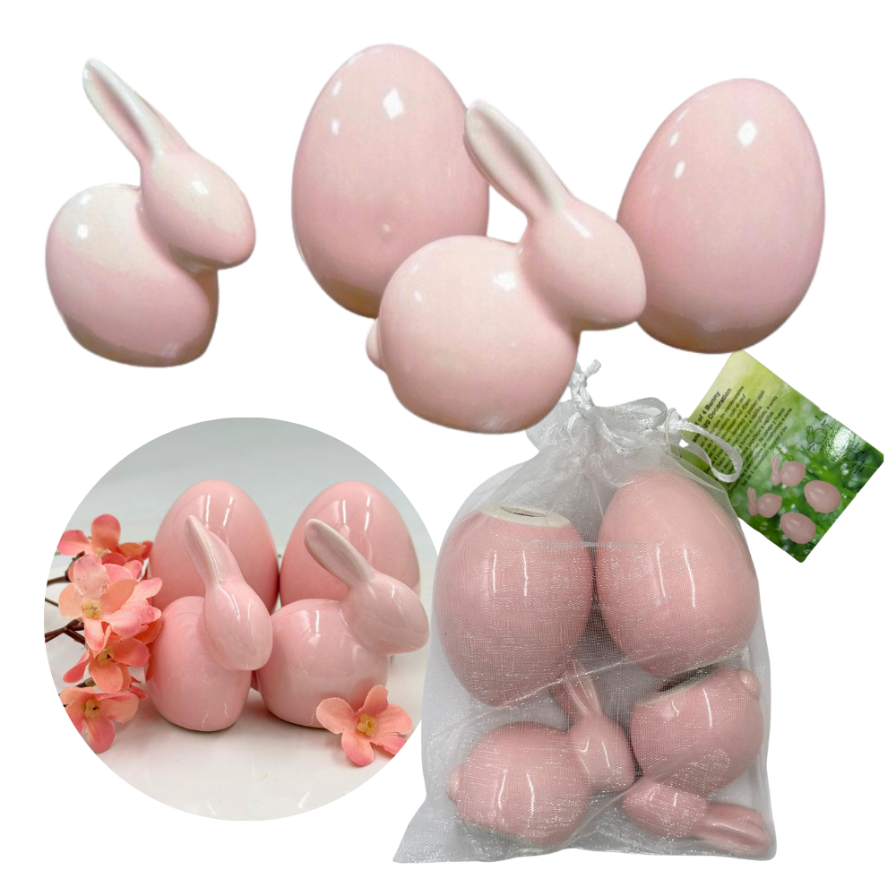WIELKANOCNY ŚWIĄTECZNE ZESTAW 4 FIGUREK CERAMICZNYCH RÓŻOWE DEKORACJA