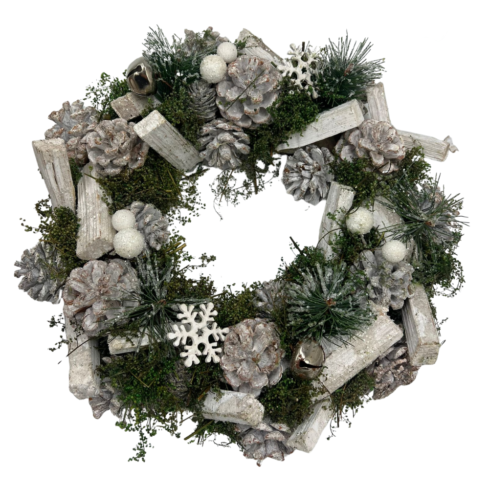 Piękny, naturalny wianek bożonarodzeniowy utrzymany w zimowej kolorystyce. Idealnie wprowadzi do domu świąteczny nastrój i stanie się wyjątkową ozdobą Twojego wnętrza.