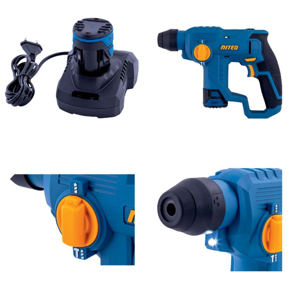 Akumulatorowa młotowiertarka udarowa 12V MAX marki NITEO niezbędne wyposażenie każdego domu i garażu! Dzięki płynnej regulacji prędkości obrotowej, możesz dostosować urządzenie do różnych zadań. Dodatkowo, dioda LED oświetla miejsce pracy, zapewniając precyzję nawet przy słabym oświetleniu. Bezpieczna i komfortowa praca to priorytet, dlatego wiertarka wyposażona jest w antypoślizgową rękojeść, która zapewnia pewny chwyt. Wskaźnik naładowania baterii informuje o poziomie energii. Opcja wiercenia oraz wiercenia z udarem umożliwia wykonywanie różnorodnych zadań. Pojemny akumulator litowo-jonowy i stacja dokująca pozwalają na szybkie ładowanie w zaledwie 1 godzinę. Prędkość obrotowa urządzenia można regulować w zakresie od 0 do 1100 obr./min. W zestawie znajdziesz także praktyczne akcesoria, takie jak wiertła SDS, wiertła HSS HEX i adapter do wierteł SDS.