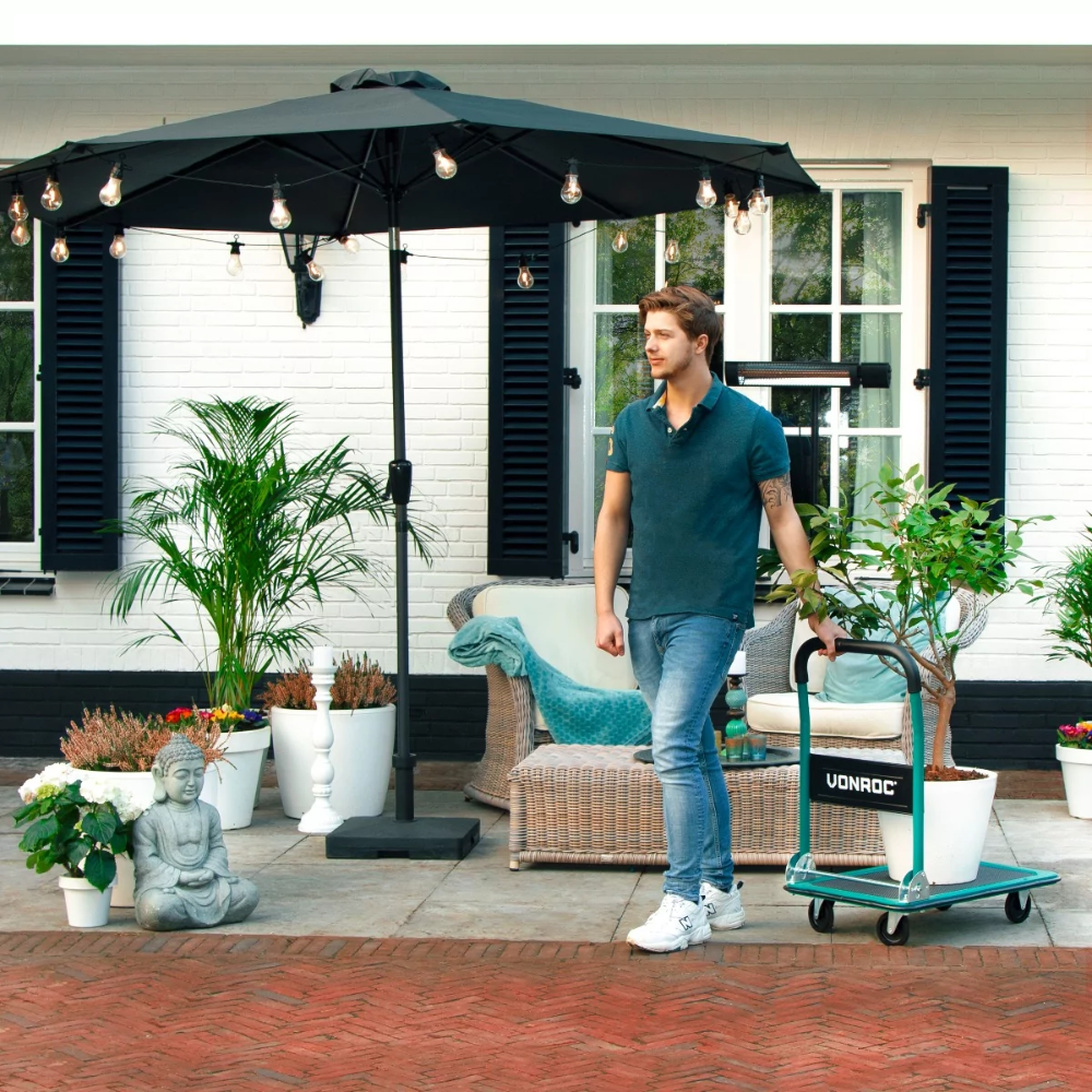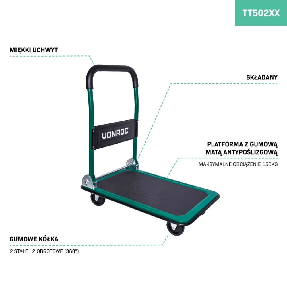 Potrzebujesz wygodnego sposobu na transport ciężkich lub nieporęcznych ładunków? Wózek transportowy VONROC to idealne rozwiązanie! Zaprojektowany do łatwego manewrowania, ten solidny, a jednocześnie lekki wózek platformowy poradzi sobie z ładunkami do 150 kg. Dzięki obracanym o 360° kółkom, zapewnia wyjątkową zwrotność, co czyni go idealnym do użytku w domu, biurze, magazynie czy warsztacie.