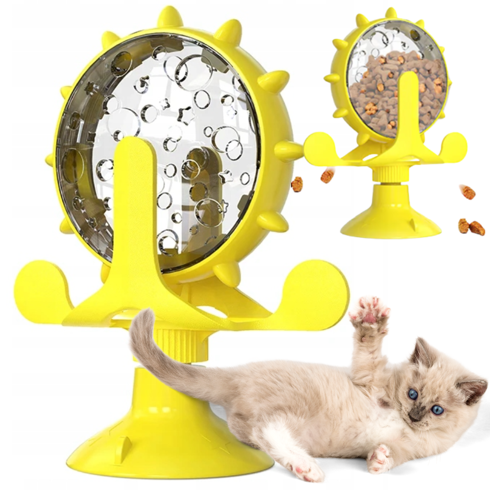 ZABAWKA KARUZELA NA PRZYSMAKI DLA KOTA PSA ŻÓŁTA INTERAKTYWNA PRZYSSAWKA