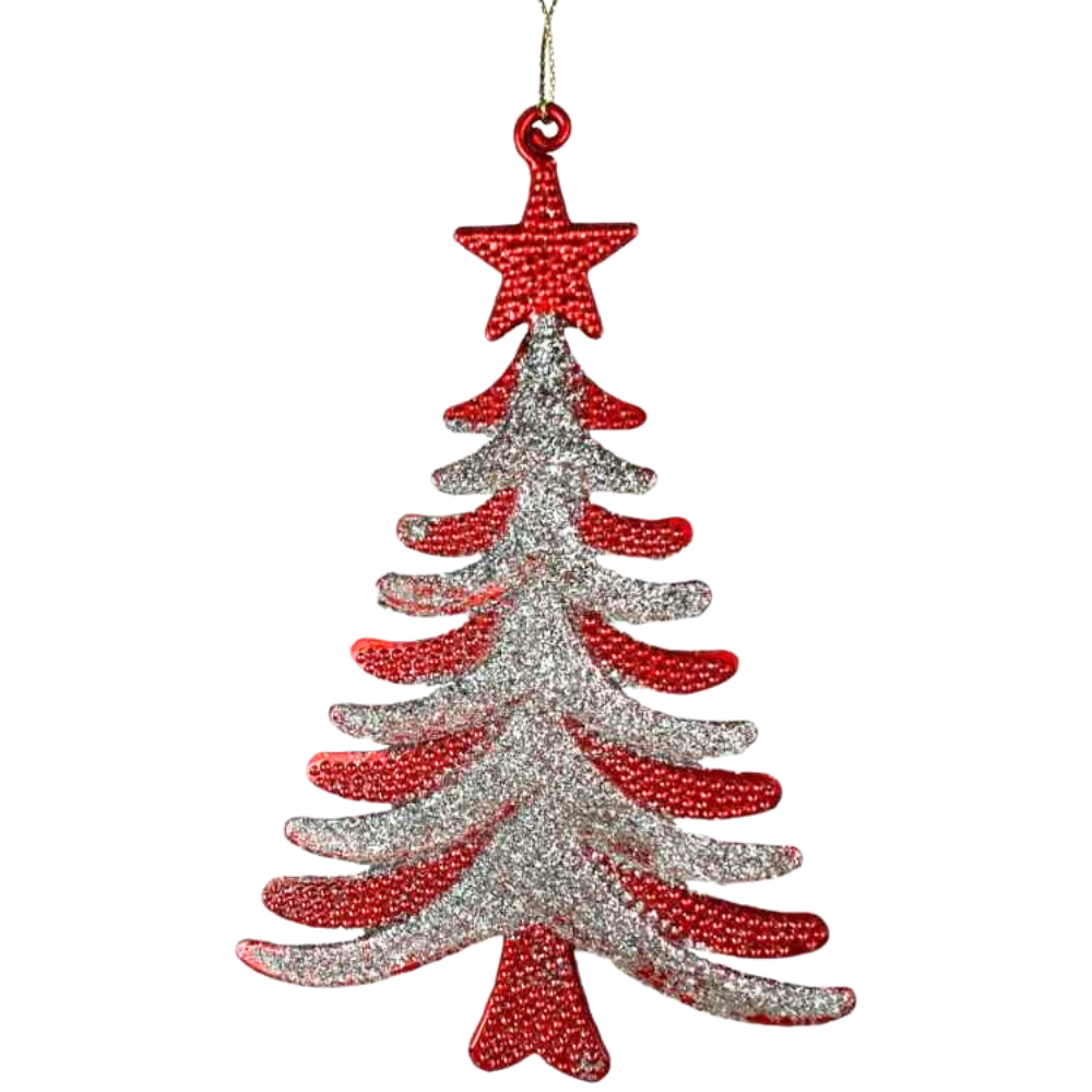 CZERWONO-SREBRNA ZAWIESZKA W KSZTAŁCIE CHOINKI 13X13CM