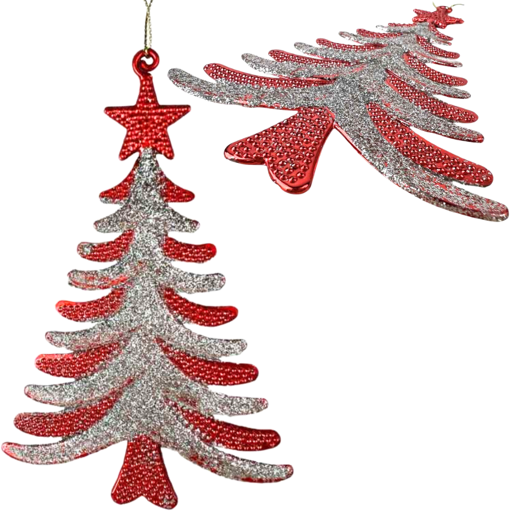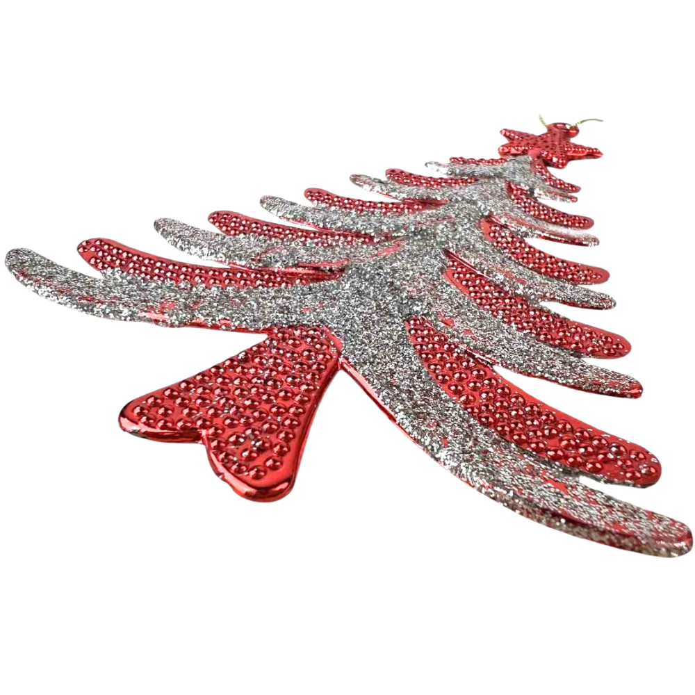 ZAWIESZKA CHOINKA CZERWONA DEKORACJA WISZĄCA NA CHOINKĘ BROKATOWA SREBRNA