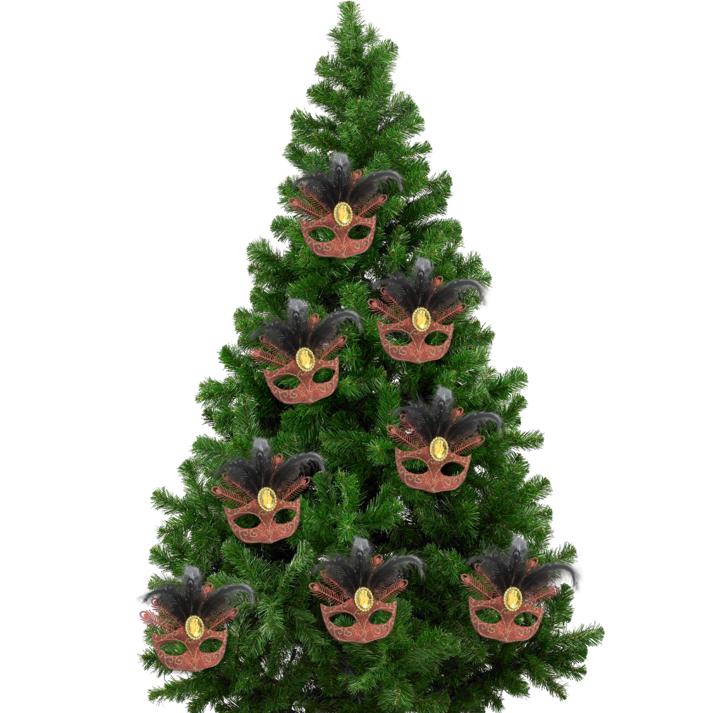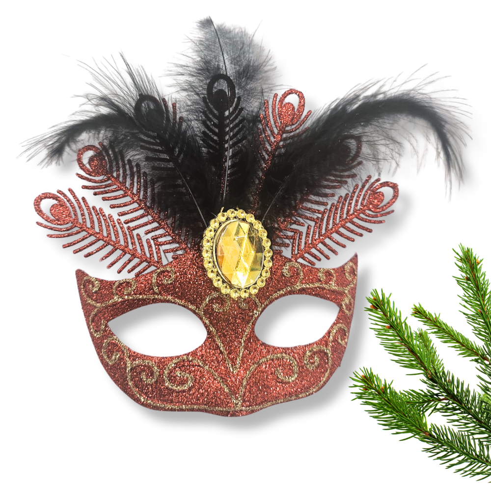 Dekoracyjna zawieszka wykonana z tworzywa sztucznego w kształcie weneckiej maski to elegancki i efektowny dodatek, który z pewnością przyciągnie uwagę. Powierzchnia zawieszki pokryta jest brokatem, który nadaje jej blasku i podkreśla jej wyrafinowany styl. Całość dopełniają delikatne pióra, które dodają jej lekkości i fantazyjnego charakteru. Idealna jako ozdoba do wnętrz, na różnego rodzaju imprezy tematyczne, bale maskowe, a także jako wyjątkowy element dekoracyjny, wprowadzający atmosferę tajemniczości i elegancji.