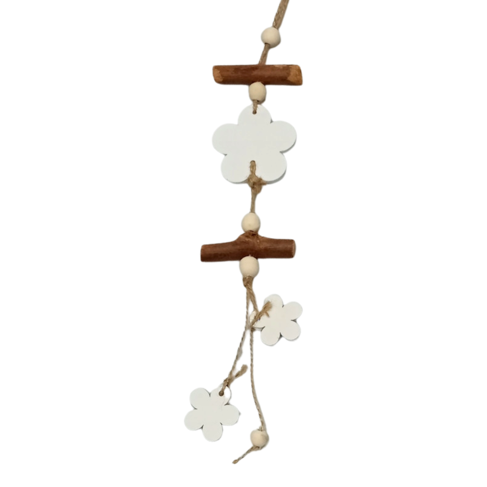 ZAWIESZKA DREKORACJA WISZĄCA DREWNIANA BIAŁE KWIATKI