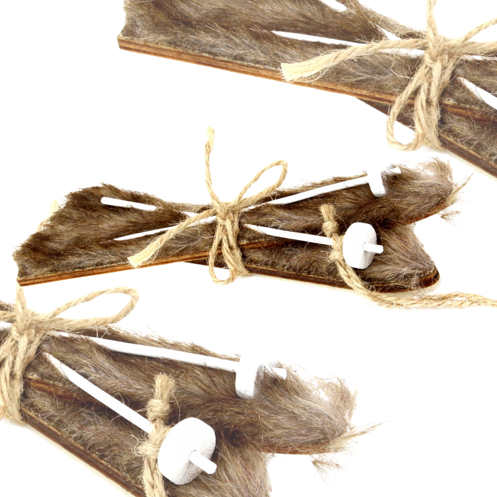✅Zawieszka na choinkę w kształcie nart wykonana z drewna.
