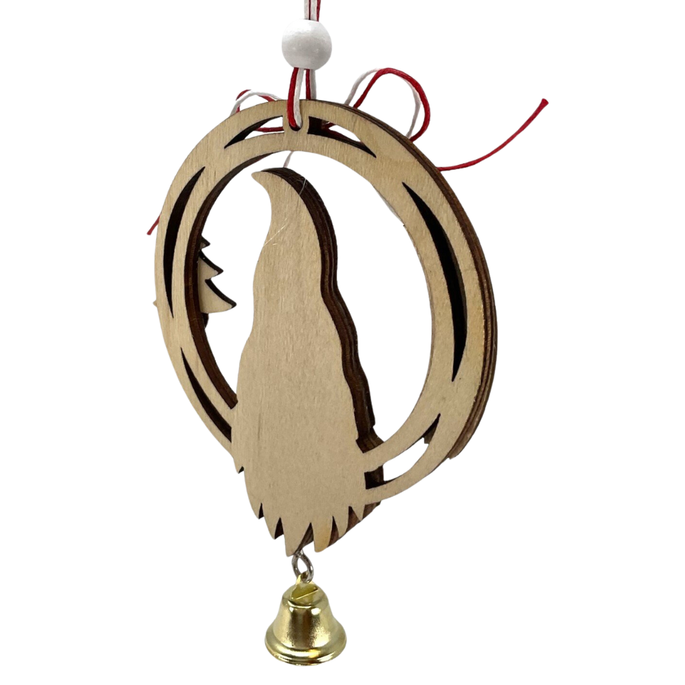ZAWIESZKA DREWNIANA OKRĄGŁA NATURALNA SKRZAT XMAS Z DZWONECZKIEM