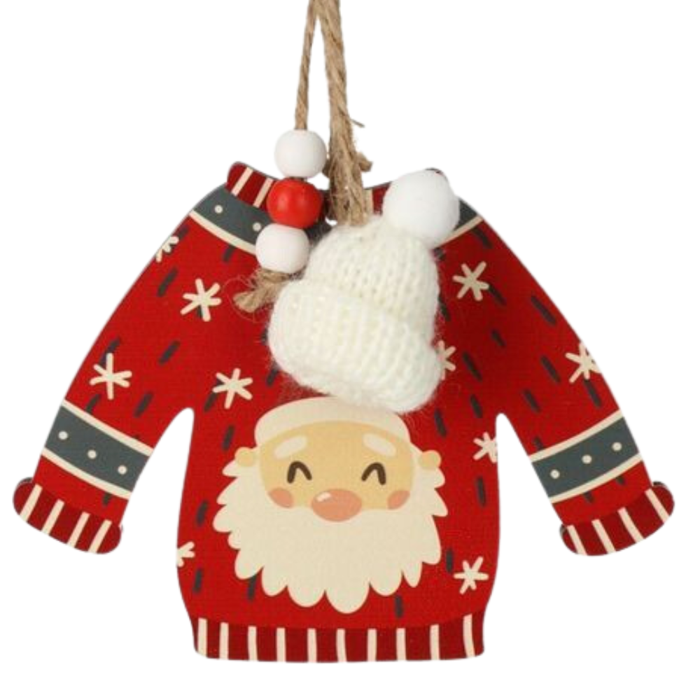 Zawieszka bożonarodzeniowa idealnie nadaje się do dodania wyjątkowego akcentu Twojej choince. Sweter z motywem drewna.