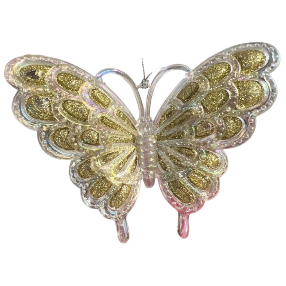 ZAWIESZKA BOMBKA MOTYL ZŁOTY TRANSPARENTNY PRZEZROCZYSTA 10 CM