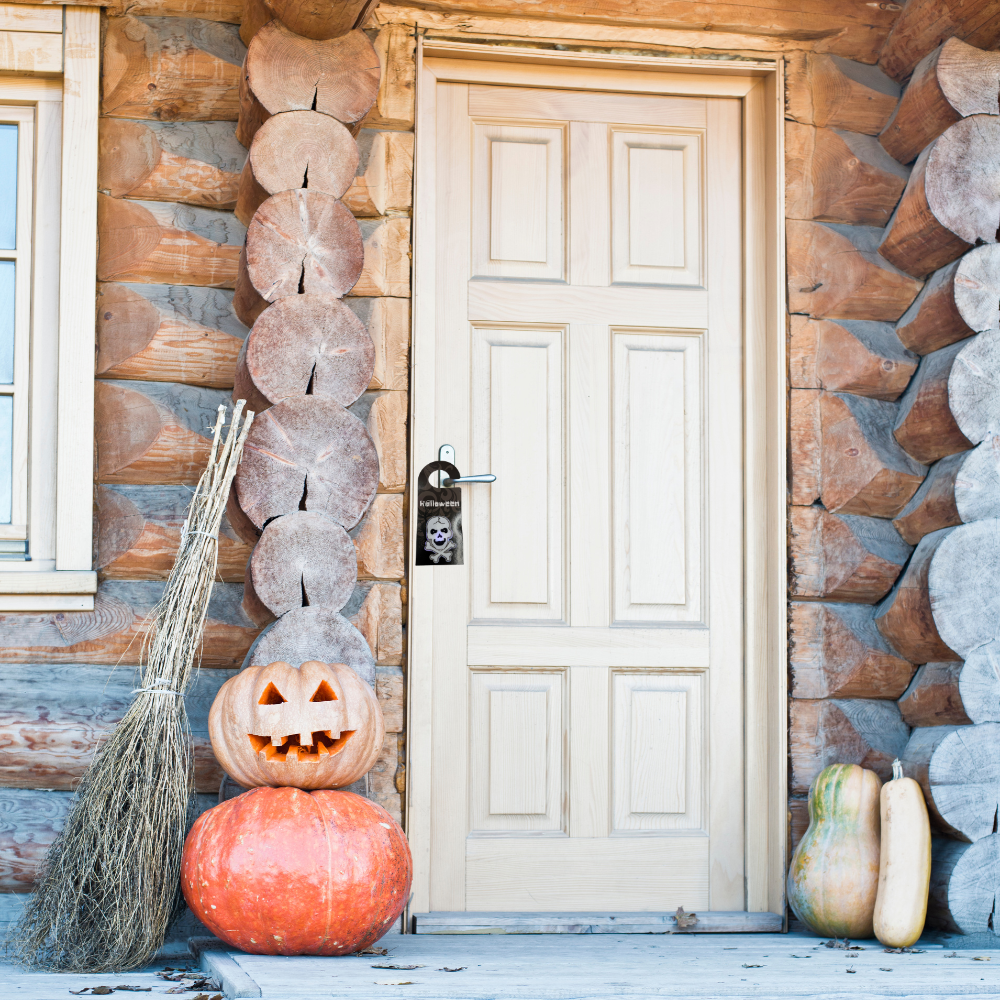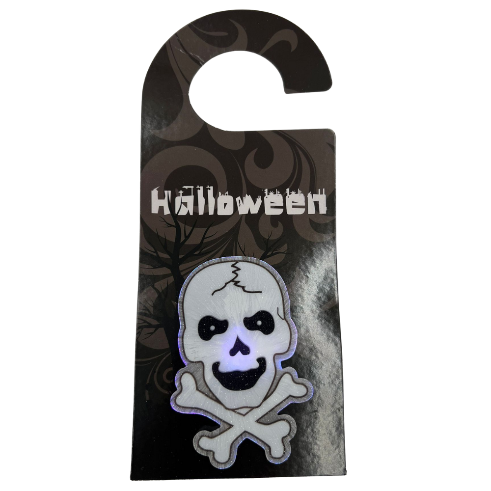 ZAWIESZKA ŚWIECĄCA NA DRZWI KLAMKĘ HALOWEEN STRASZNA CZACHA LED ŚWIECĄCA