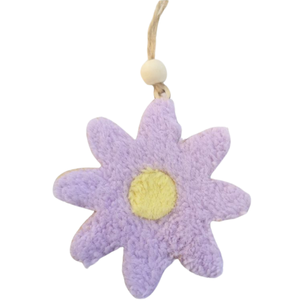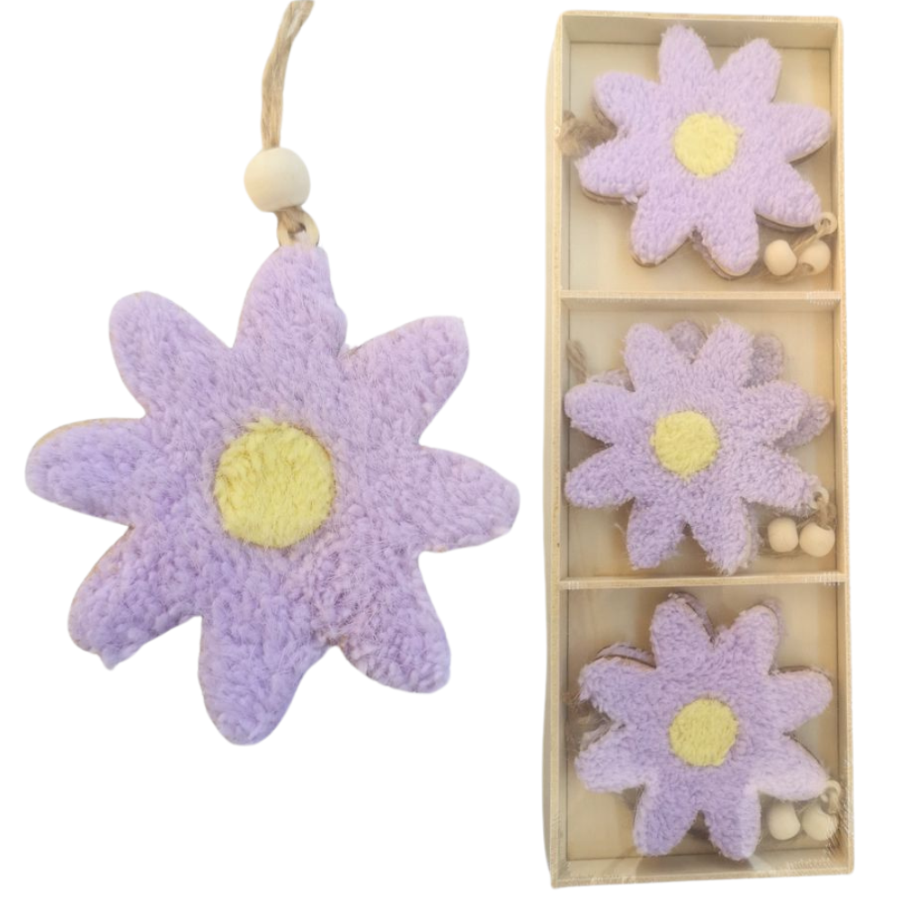 ZAWIESZKI DREWNIANE PLUSZOWE KWIATKI FIOLETOWE 8 LISTKÓW