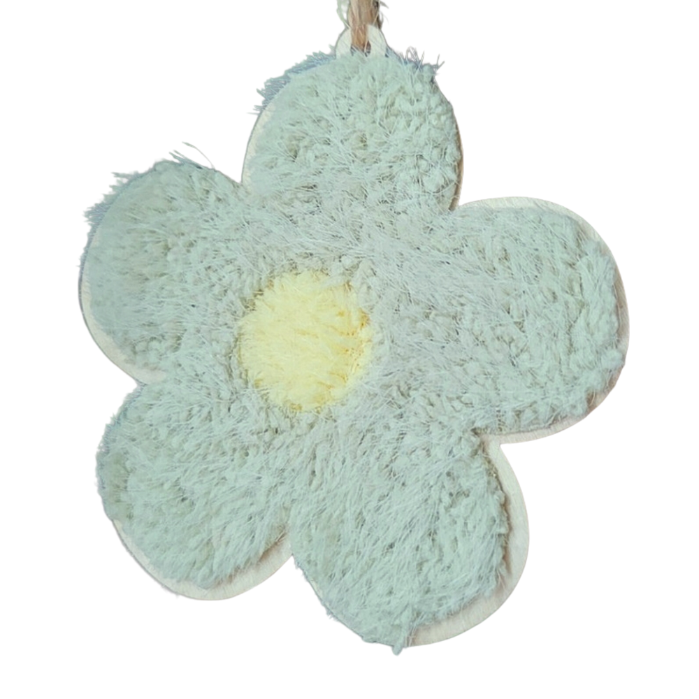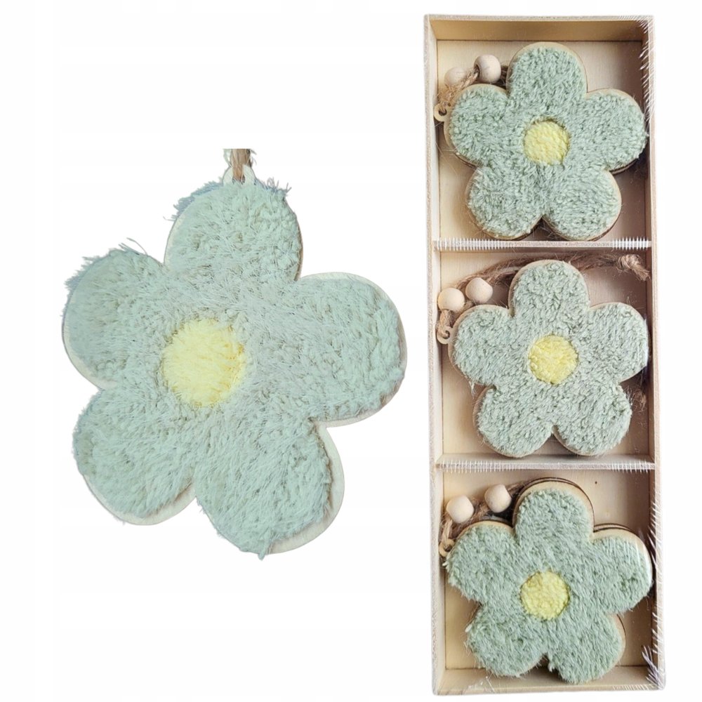 ZAWIESZKI DREWNIANE PLUSZOWE KWIATKI ZIELONE