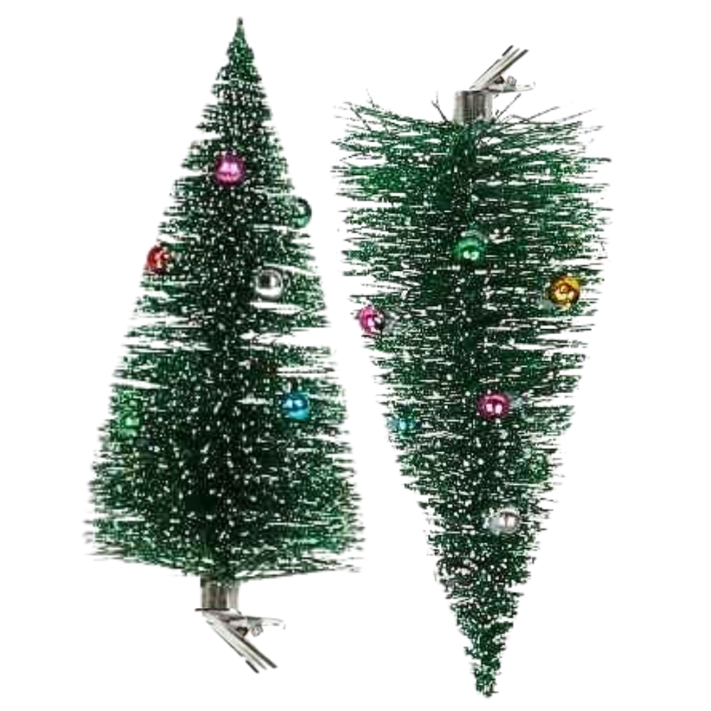 ZESTAW 2SZT ZIELONYCH CHOINEK Z BOMBKAMI Z KLIPSEM BOŻE NARODZENIE BROKAT