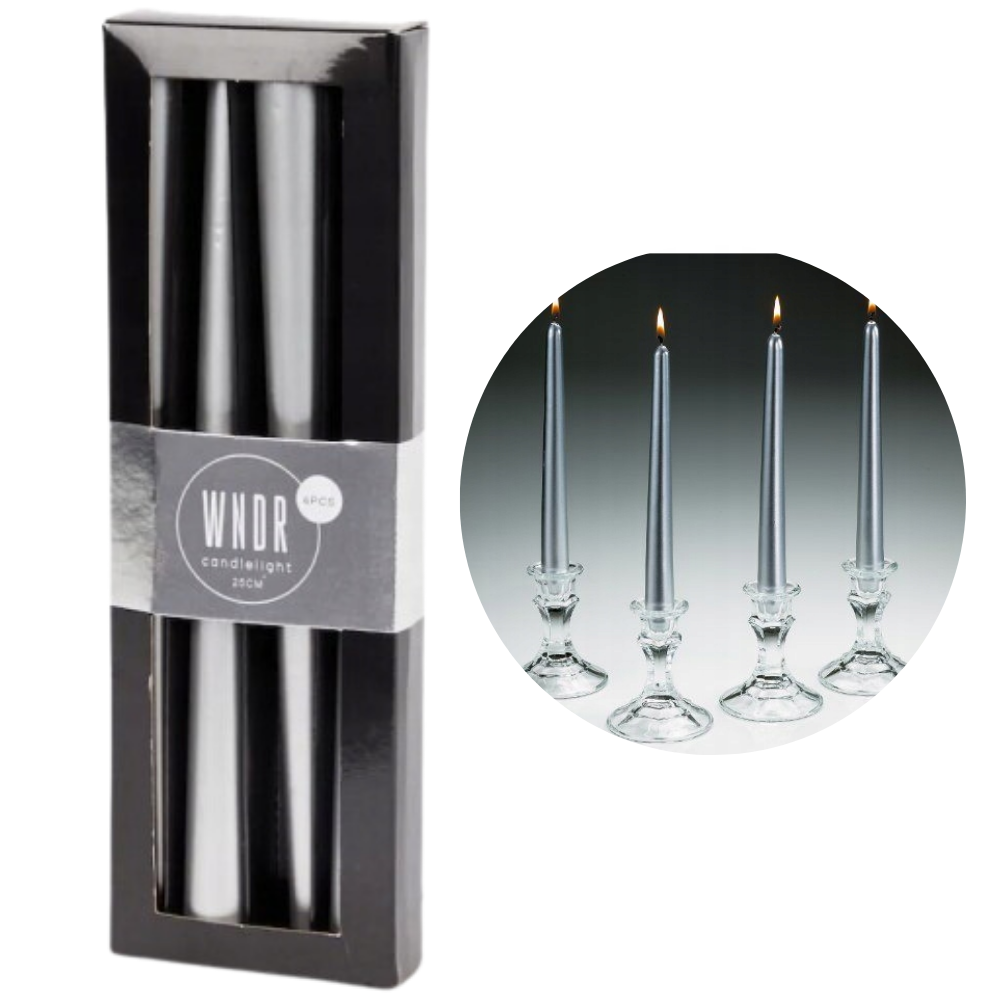ZESTAW 4 ŚWIEC WNDR SREBRNE