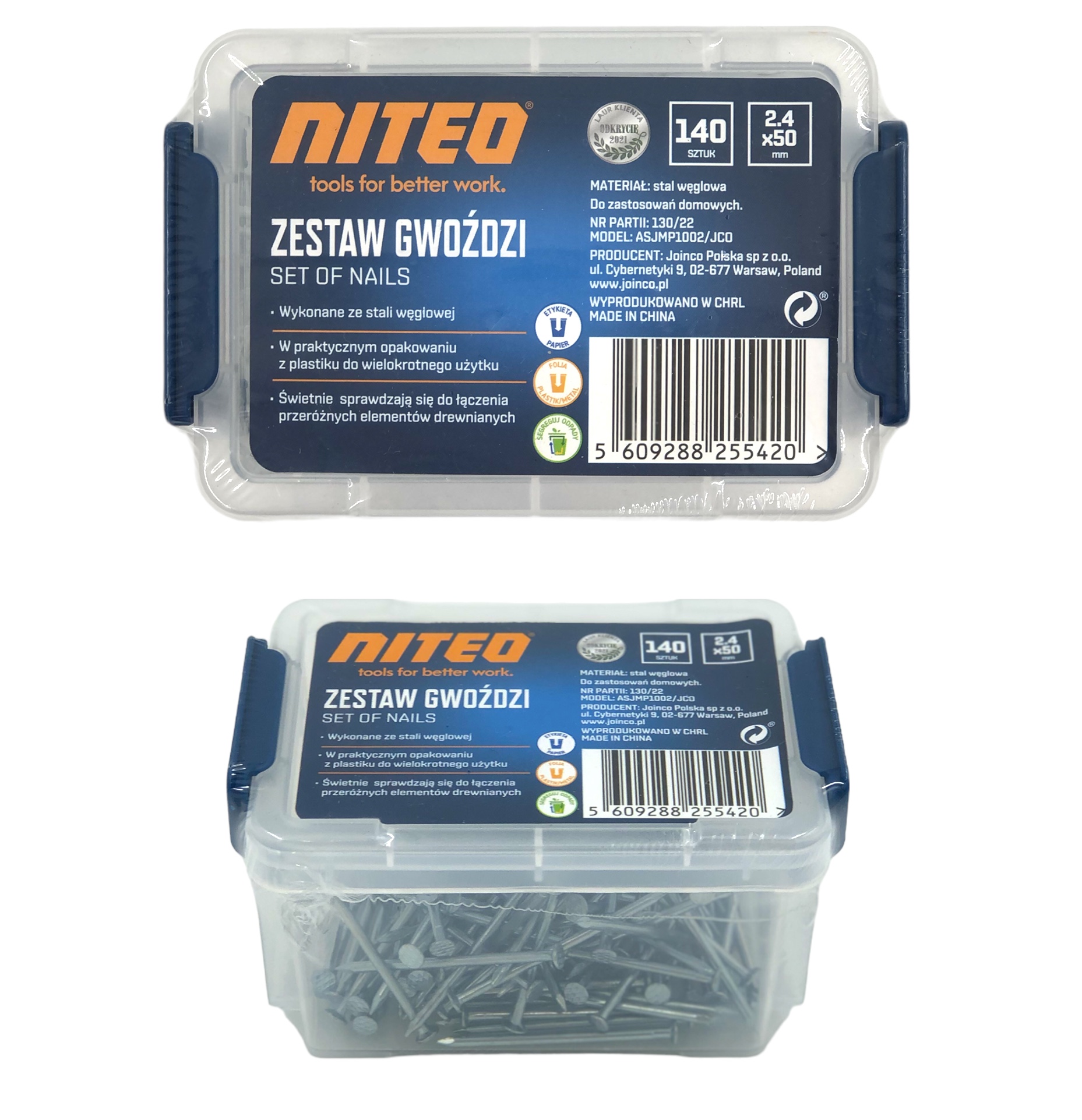 ZESTAW GWOŹDŻI 140SZT. NITEO TOOLS 2,4x50mm