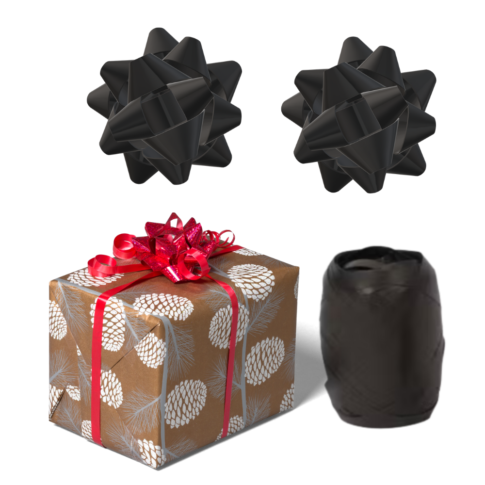 ZESTAW KOKARD I WSTĄŻEK DO PAKOWANIA PREZENTÓW DESIGN CZARNY