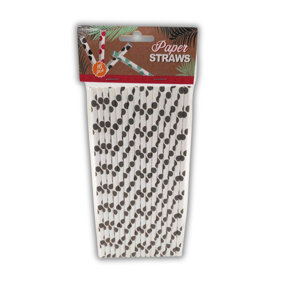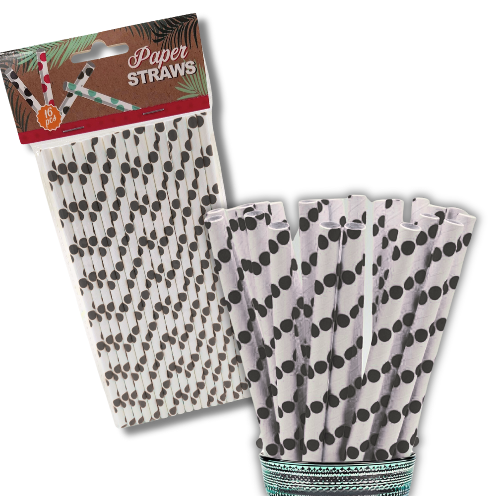ZESTAW SŁOMEK PAPIEROWYCH 16SZT BIAŁO CZARNE