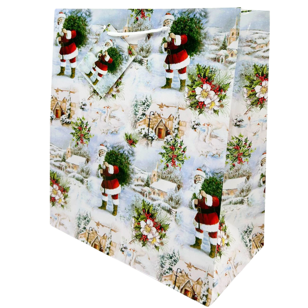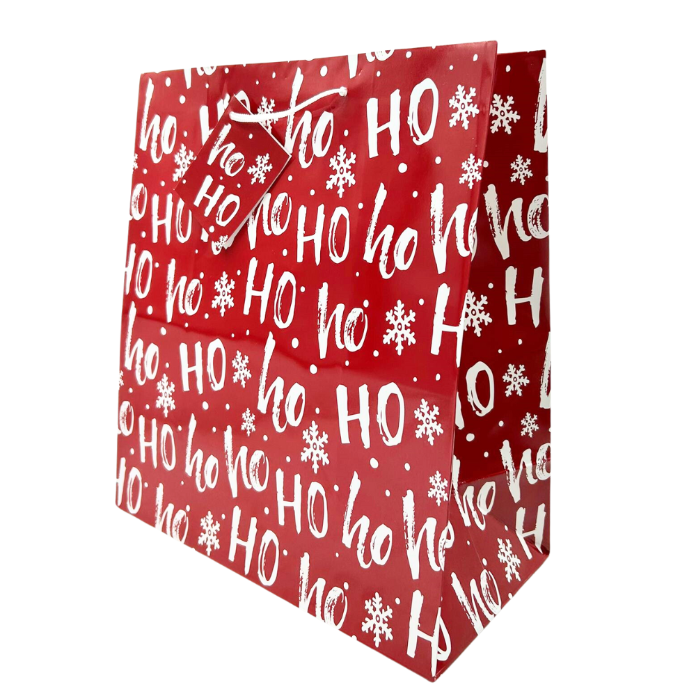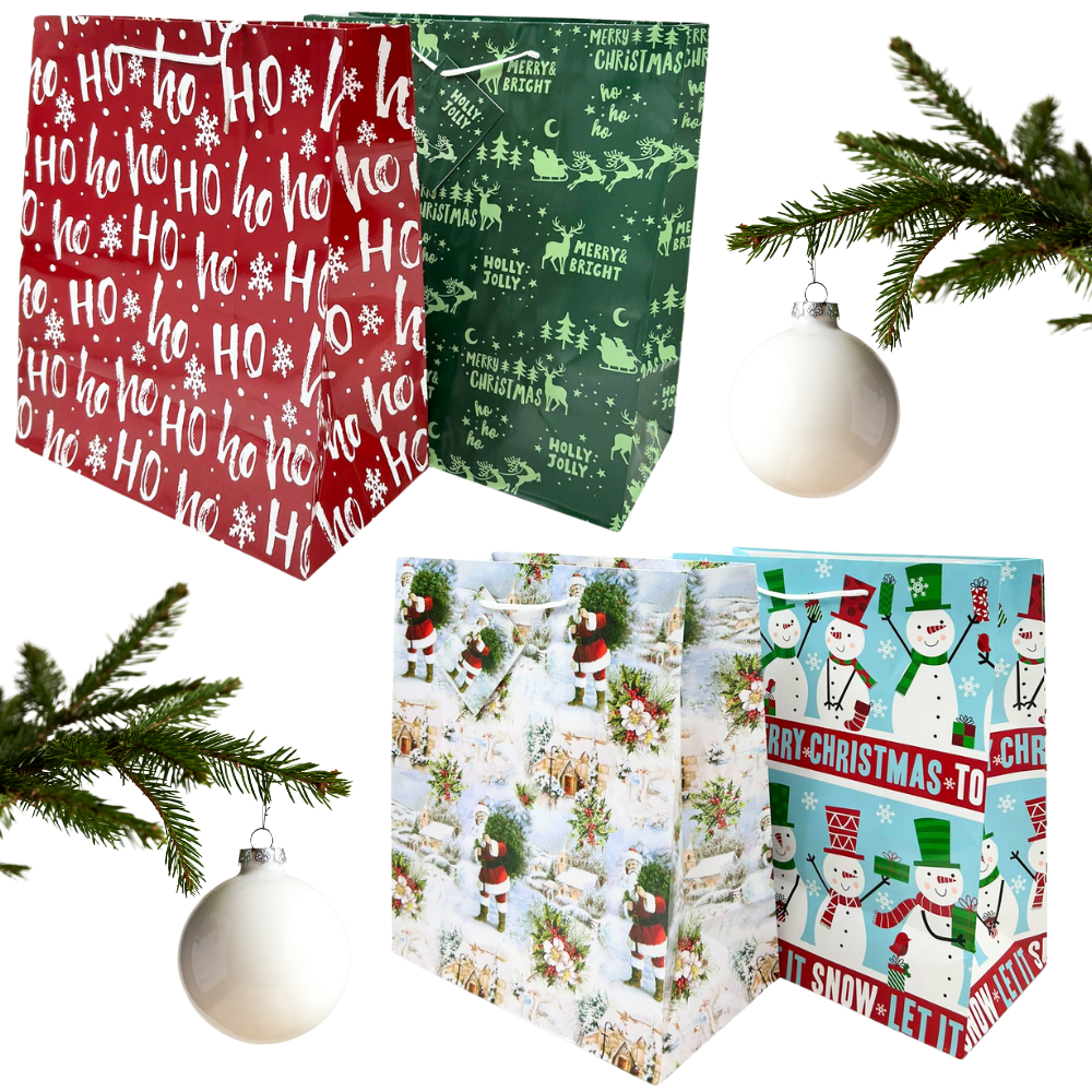 ZESTAW TOREBEK PREZENTOWYCH ŚWIĄTECZNYCH W RÓŻNE WZORY 4 SZTUKI 29X15X33CM HOHO MERRY CHRISTMAS